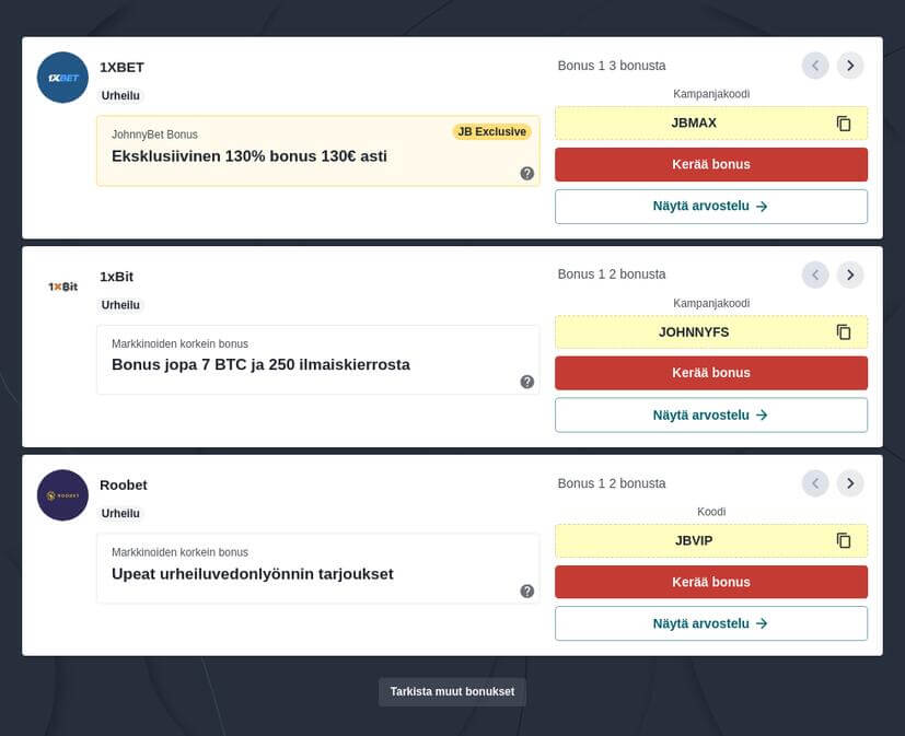 Tsekkaa erikoistarjoukset vedonlyöntiin